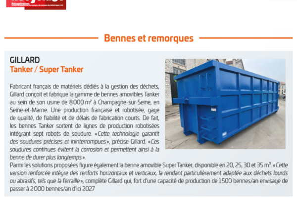 Gillard SAS conçoit, fabrique et commercialise des matériels de gestion des déchets : bennes ampliroll amovibles , benne tanker, bennes amovibles et de collecte, compacteurs à déchets , presses, containers, matériels de déchetteries.