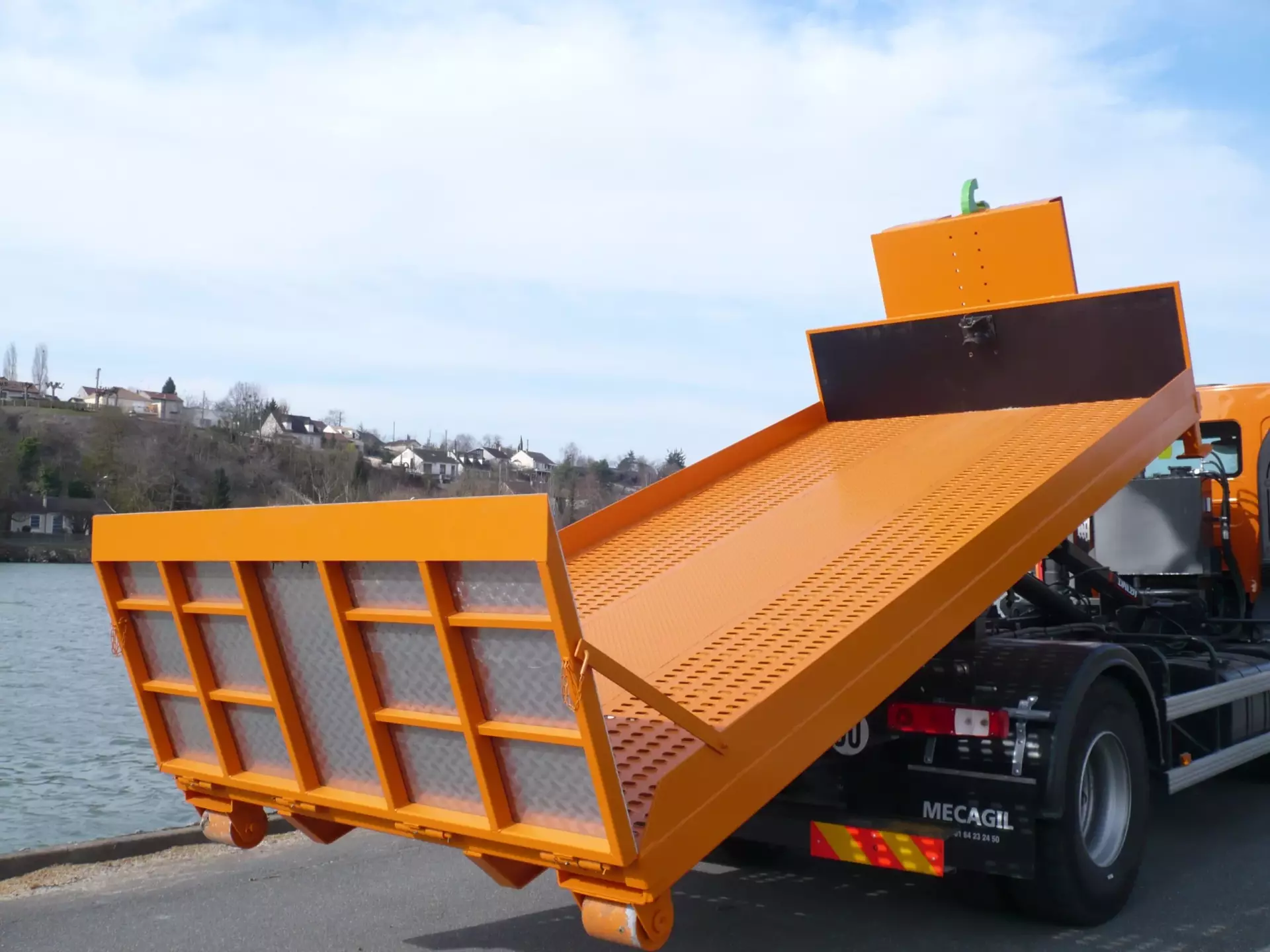 Plancher en tôle striée antidérapante ou en acier de 4,5 à 6 mm pour une résistance accrue.