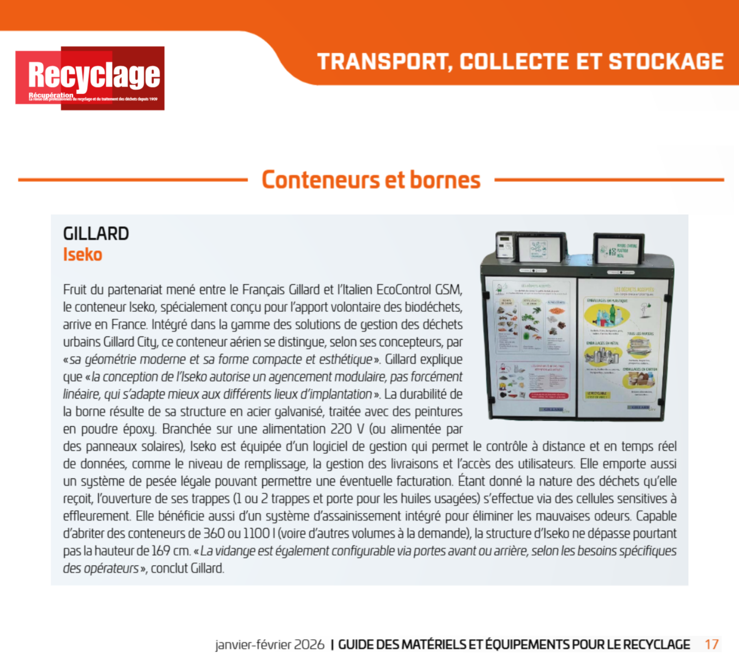 Le conteneur aérien ISEKO, dédié au stockage des biodéchets, figure dans le Guide 2026 de Recyclage Récupération.