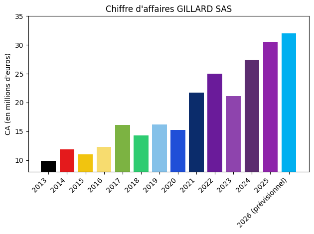 Notre capital social s’élève à 1 000 000 €, et nous prévoyons un chiffre d’affaires de 32 millions d’euros pour 2026. Par ailleurs, Gillard SAS repose sur une structure solide avec 5 200 000 € de capitaux propres. Enfin, 80 collaborateurs participent activement à la réussite de nos projets industriels.