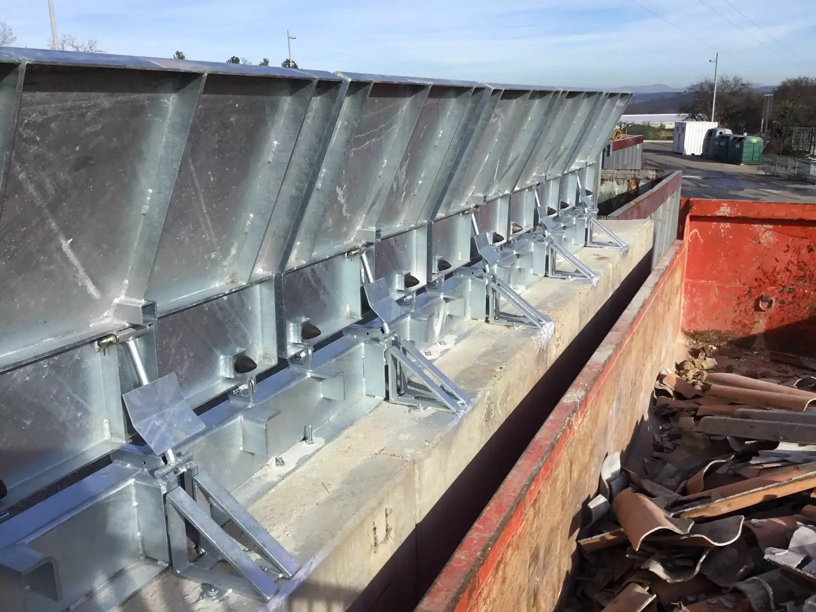 Tout d’abord, la hauteur des barrières SKI dépasse celle des modèles concurrents. Cela permet de charger les déchets en toute sécurité, au centre de la benne, et non sur les côtés, réduisant ainsi les risques d’accidents. Ensuite, elles intègrent un levier de commande qui facilite la manipulation lors du relevage et de l’abaissement. Par ailleurs, leur construction robuste en acier galvanisé à chaud, associée à une tôle de 4 mm d’épaisseur et à des renforts intérieurs, garantit une longévité accrue.