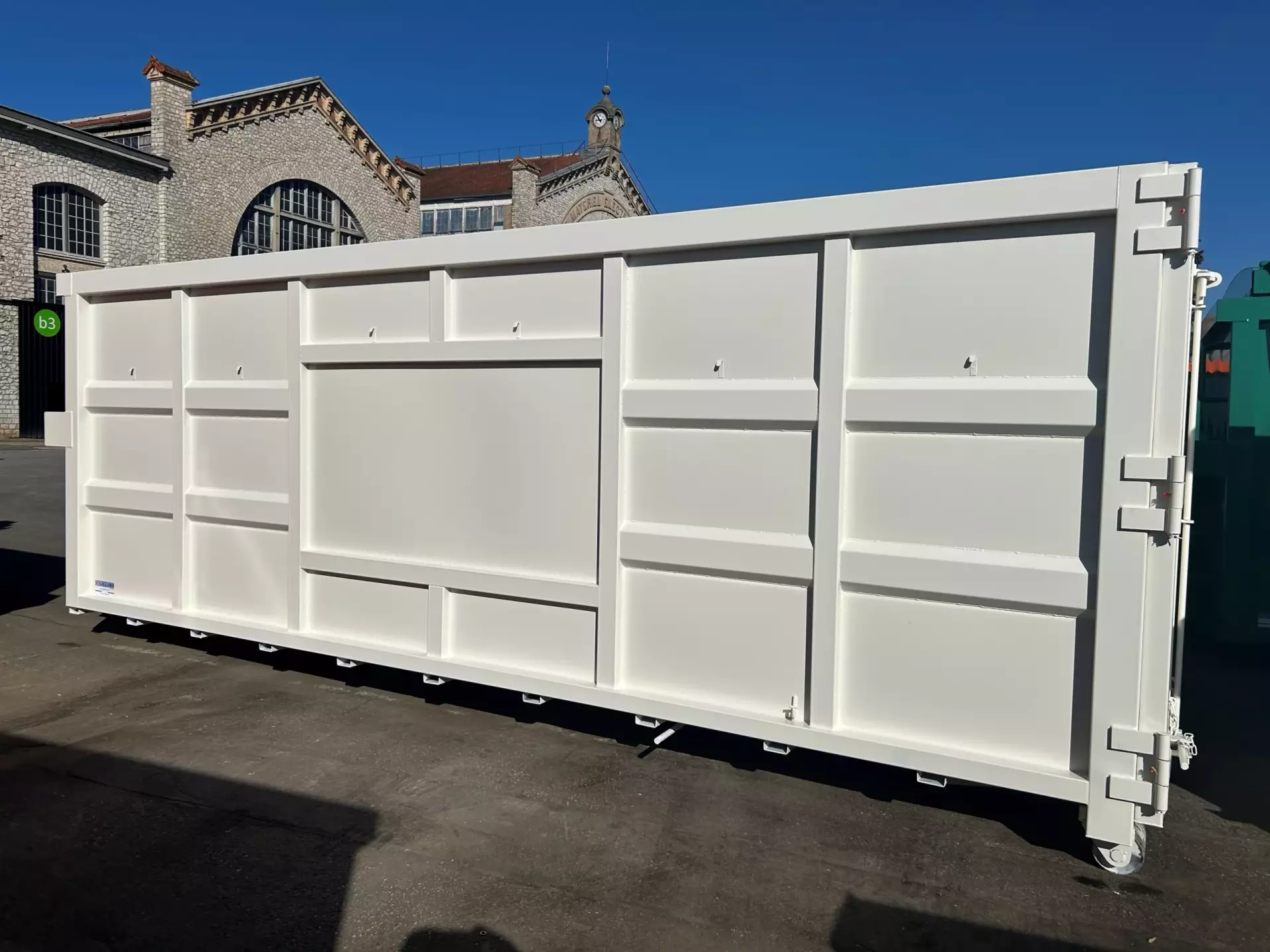 Fabriquées en acier S235, ces bennes amovibles sont disponibles en 4 volumes : 20, 25, 30 et 35 m³. Leur conception renforcée, associée à une soudure robotisée, garantit une résistance exceptionnelle face aux conditions difficiles et aux charges extrêmes.