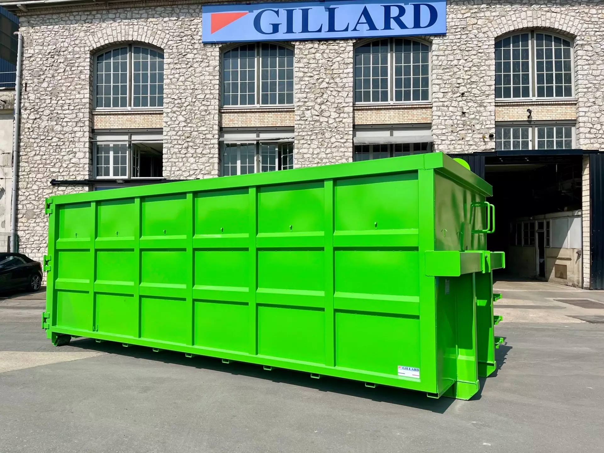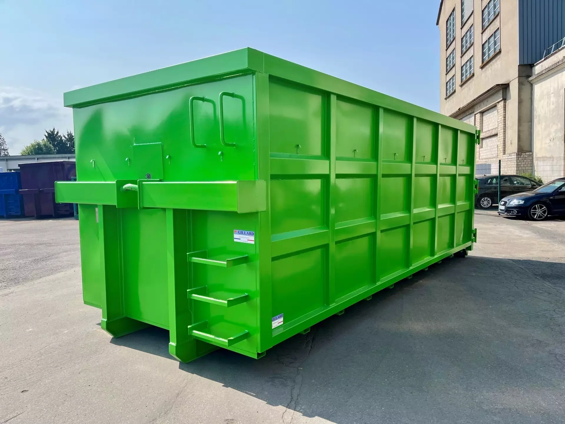 Le fabricant GILLARD produit jusqu’à 180 bennes par mois dans son site de 4500 m² à Champagne-sur-Seine (77). L’usine est équipée de 6 robots, 2 cabines de peinture et 10 ponts roulants, assurant un haut niveau de qualité et de régularité.