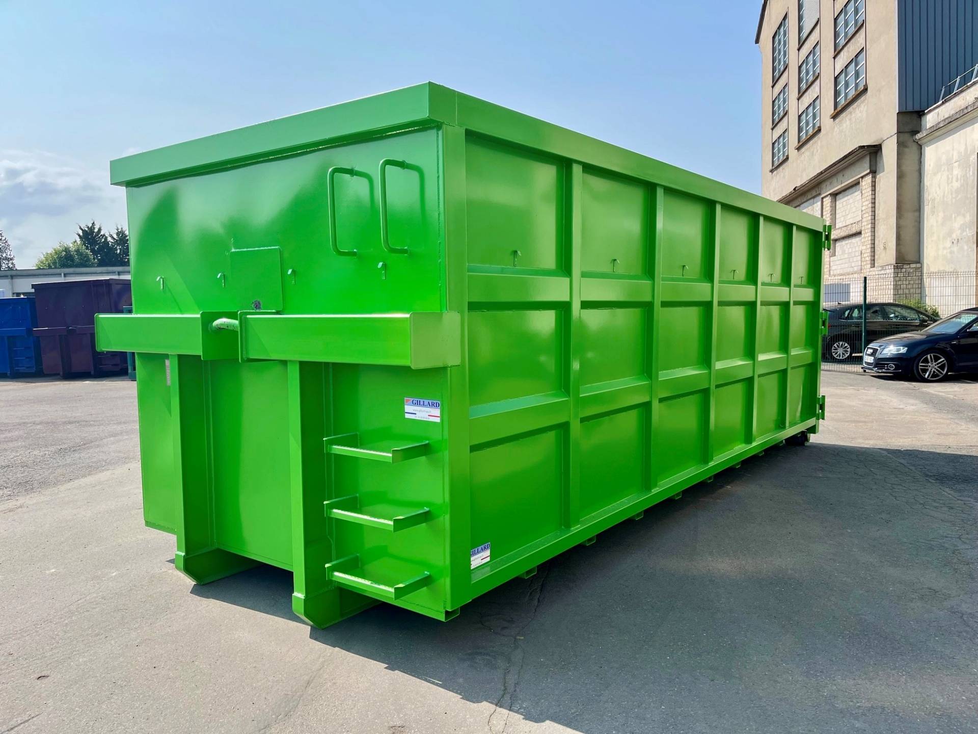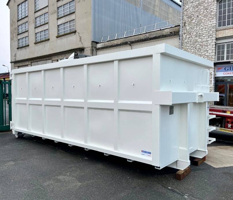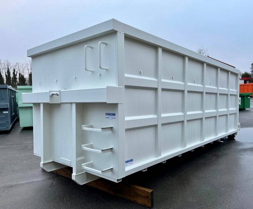 Fabriquées en acier S235, ces bennes amovibles sont disponibles en 4 volumes : 20, 25, 30 et 35 m³. Leur conception renforcée, associée à une soudure robotisée, garantit une résistance exceptionnelle face aux conditions difficiles et aux charges extrêmes.