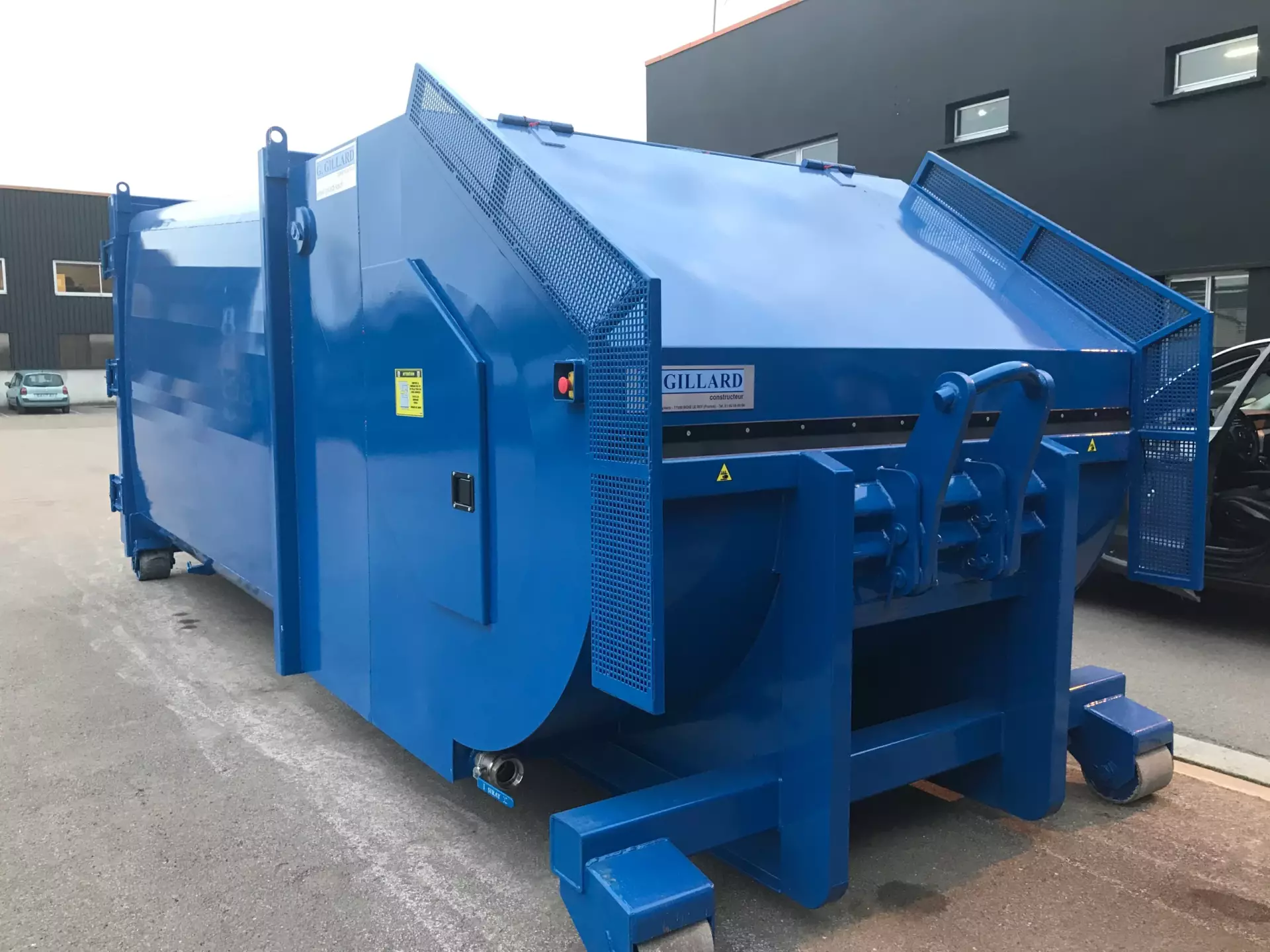 Ces deux modèles se distinguent par leur structure robuste en acier S235, leur système de compaction par pelle performant et leur seuil de chargement bas, garantissant une ergonomie optimale pour les agents de déchetterie, sans compromettre la sécurité grâce au capot de fermeture.