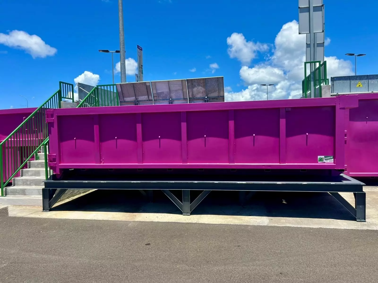 Le réhausseur de benne DOK est une structure mécano-soudée en acier S235, conçue pour surélever les bennes et compacteurs dans les déchetteries. Il permet d’aligner la hauteur des bennes avec celle des quais, facilitant ainsi le chargement et le déchargement des déchets. La hauteur est définie lors de la commande, avec une élévation maximale de 1,3 mètre.